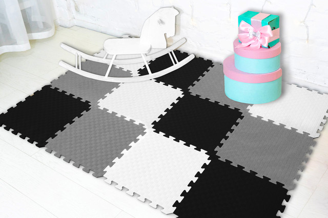 Широка колірна гамма дозволить постелити м'яка підлога під інтер'єр вашої кімнати. А за допомогою комбінації з декількох кольорів, можна зібрати покриття за вашим бажанням, яке буде радувати вас і вашого малюка.